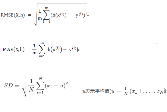 其次是选择性能指标,回归问题的典型性能衡量指标是均方根误差(RMSE),平均******误差(MAE),标准差(SD)